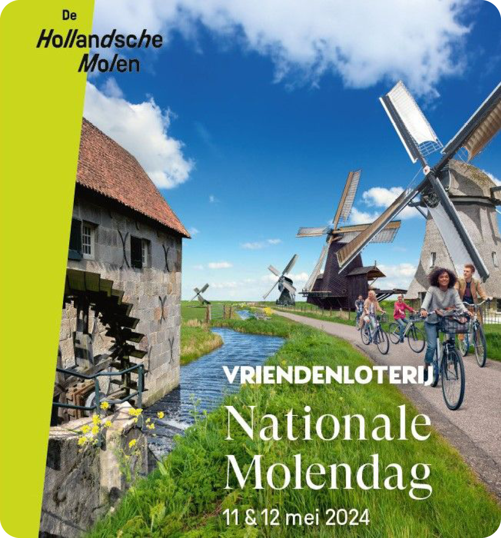 Op 11 en 12 mei 2024 draait alles om de VriendenLoterij Nationale Molendag. Voor de 51e keer openen honderden wind- en watermolens hun deuren. Molenaars en molengidsen staan overal klaar om hun bezoekers de kracht van de wieken te laten voelen. Voor het eerst brengt het project ‘Verhalen van de wind’ de molenaarscultuur tot leven. Verhalen, muziek en beeld laten eeuwenoude tradities herleven, terwijl kinderen in interactieve workshops de verhalen ontdekken en creatief aan de slag gaan.